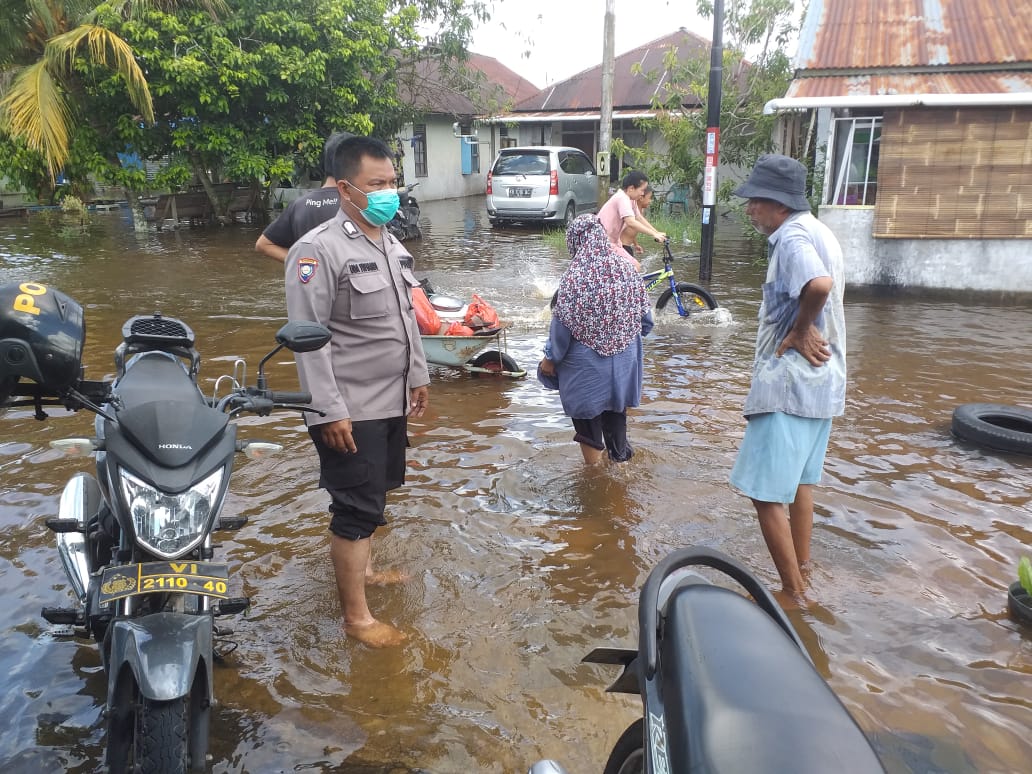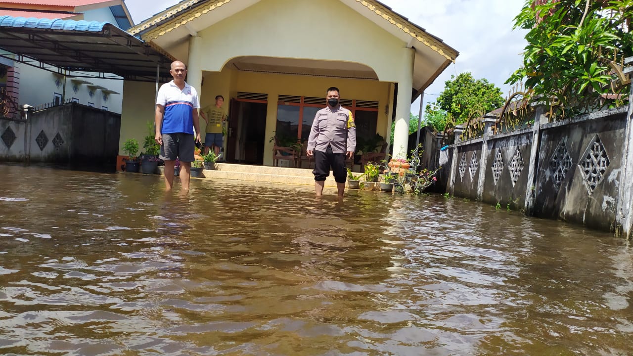 Sungai Raya - Bhabinkamtibmas Polsek Sungai Raya bersama Ketua RT, cek Banjir rob akibat pasang laut yang menggenangi yang kerap meremdam Desa Arang Limbung dan Desa Limbung, sehingga mengakibatkan air menggenangi sebagian Rumah Warga Desa, Rabu (8/12/21) pagi 10.00 Wib.
