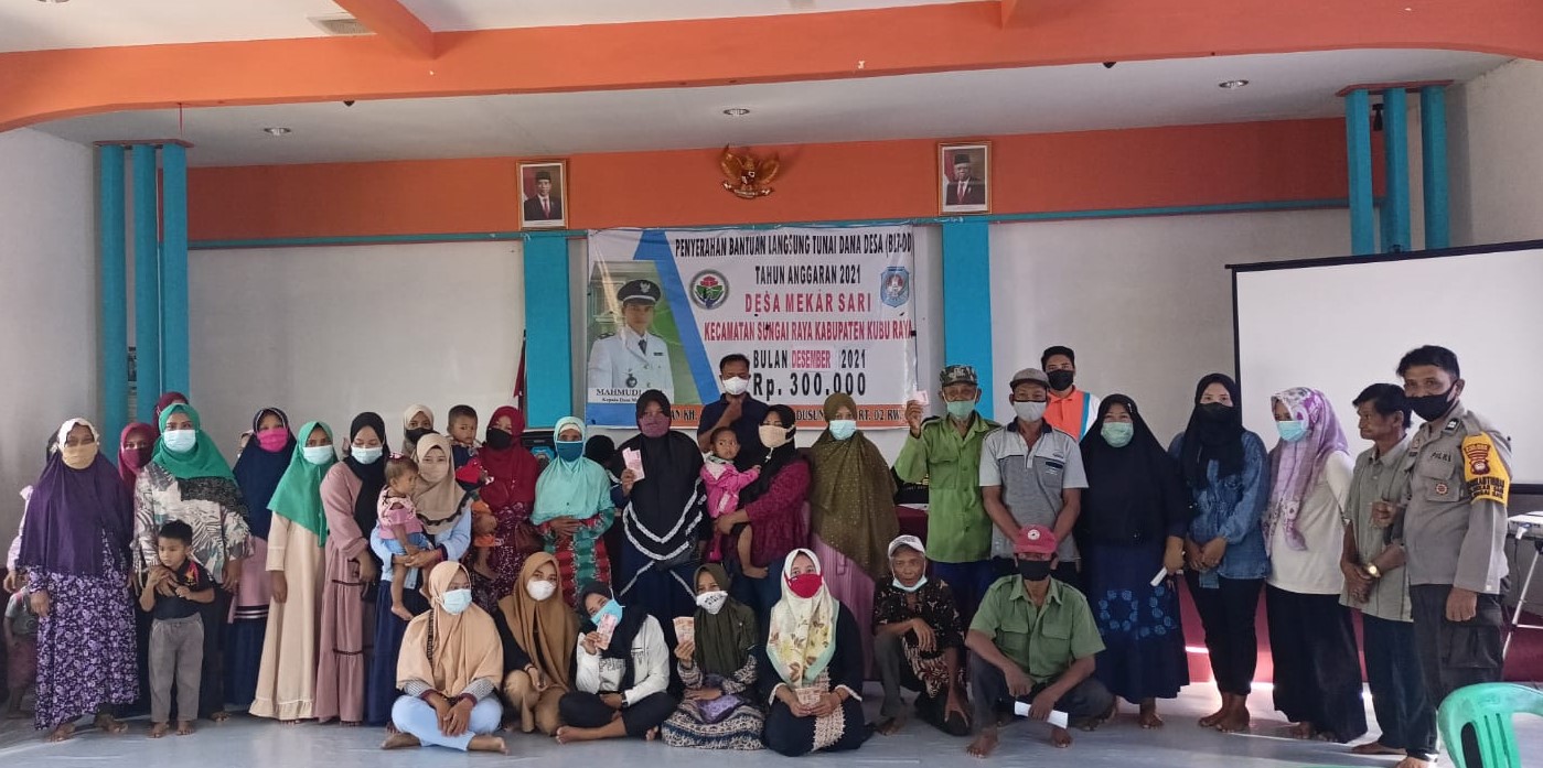 Bantuan Langsung Tunai Dana Desa ( BLT DD ) adalah program pemerintah dalam rangka peduli warga yang terdampak covid-19, Pemdes Mekar Sari kali ini melakukan penyaluran BLT DD kepada warga Keluarga Penerima Manfaat ( KPM ) di Desanya. Kades Mekar Sari menerangkan bahwasanya hari ini adalah penyaluran BLT DD yang ke 12 tahun 2021 yang disalurkan kepada 102 keluarga penerima manfaat dengan besaran dana yang diterima warga yaitu Rp.300.000,- per- KPM nya.