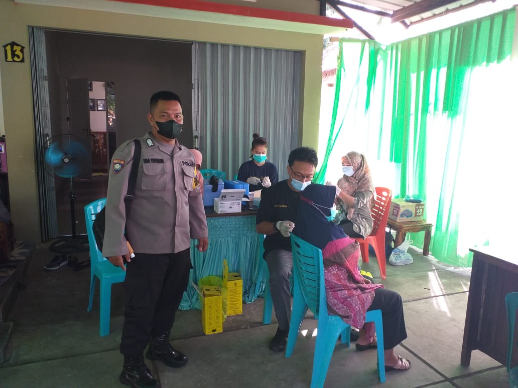 Bhabinkamtibmas Polsek Sungai Raya Pantau kegiatan Vaksin Tahap II di Kediaman Ustad Baharudin Wonodadi II