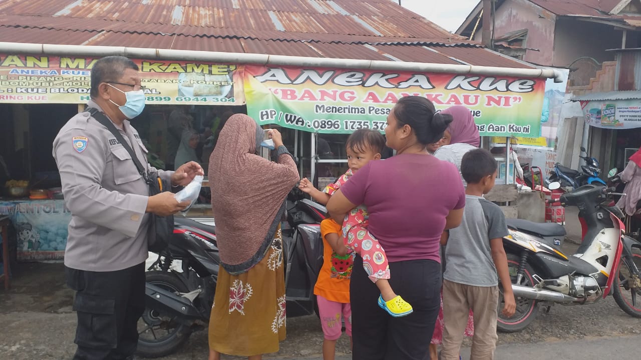 Aktivitas tersebut dipandu langsung oleh Panit Binmas Polsek Sungai Raya Iptu Reflen bersama 5 personilnya melaksanakan sosialisasi Pencegahan dan penangkalan penyebaran Covid- 19.