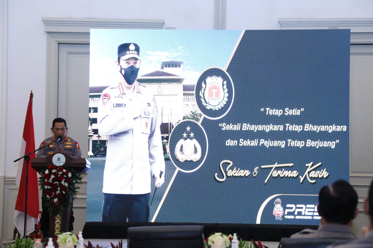 "Terima kasih atas seluruh dukungan dan support kepada kami selaku junior yang saat ini diberikan kepercayaan untuk melanjutkan estafet kepemimpinan sebagai kepala kepolisian sehingga kami dapat berjalan di tengah situasi yang serba sulit, namun kami berupaya terus eksis dan memberikan pelayanan terbaik kepada masyarakat," kata Sigit dalam sambutannya.