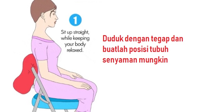 Ambilah posisi duduk senyaman mungkin di atas sebuah kursi. Pastikan anda merasa rileks dan santai, jauhkan pikiran yang macam macam.