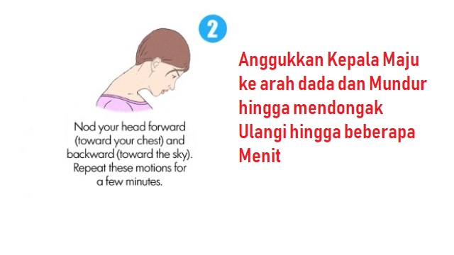 Anggukan kepala anda ke bawah dan ke atas. Lakukan dalam waktu 2 menit. Lakukan dengan perlahan tapi pasti.