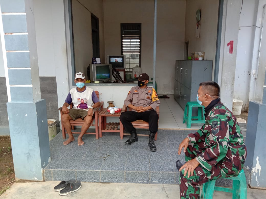 Bhabinkamtibmas Desa Sungai Ambangah dampingi Tim Traser gencar lakukan pemantauan warga yang terkonfirmasi Covid 19