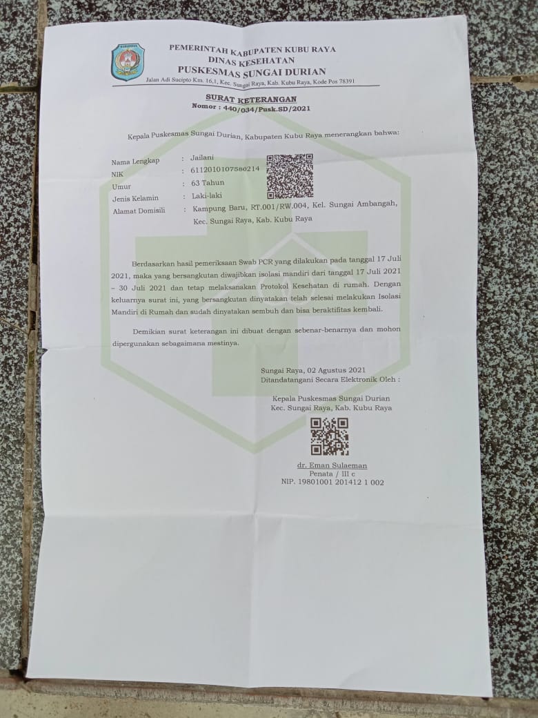 "untuk hari ini kami Tracing ke kediaman JN dan FN, keduanya terkonfirmasi Covid 19 dan sudah melakukan isoma selama 14 hari, setalah dilakukan pengecekan oleh Tim Traser keduanya sudah dinyatakan negatif covid 19", ungkap Bhabinkamtibmas Desa Sungai Ambangah, Aipda Mardon, Jumat (6/8/21).