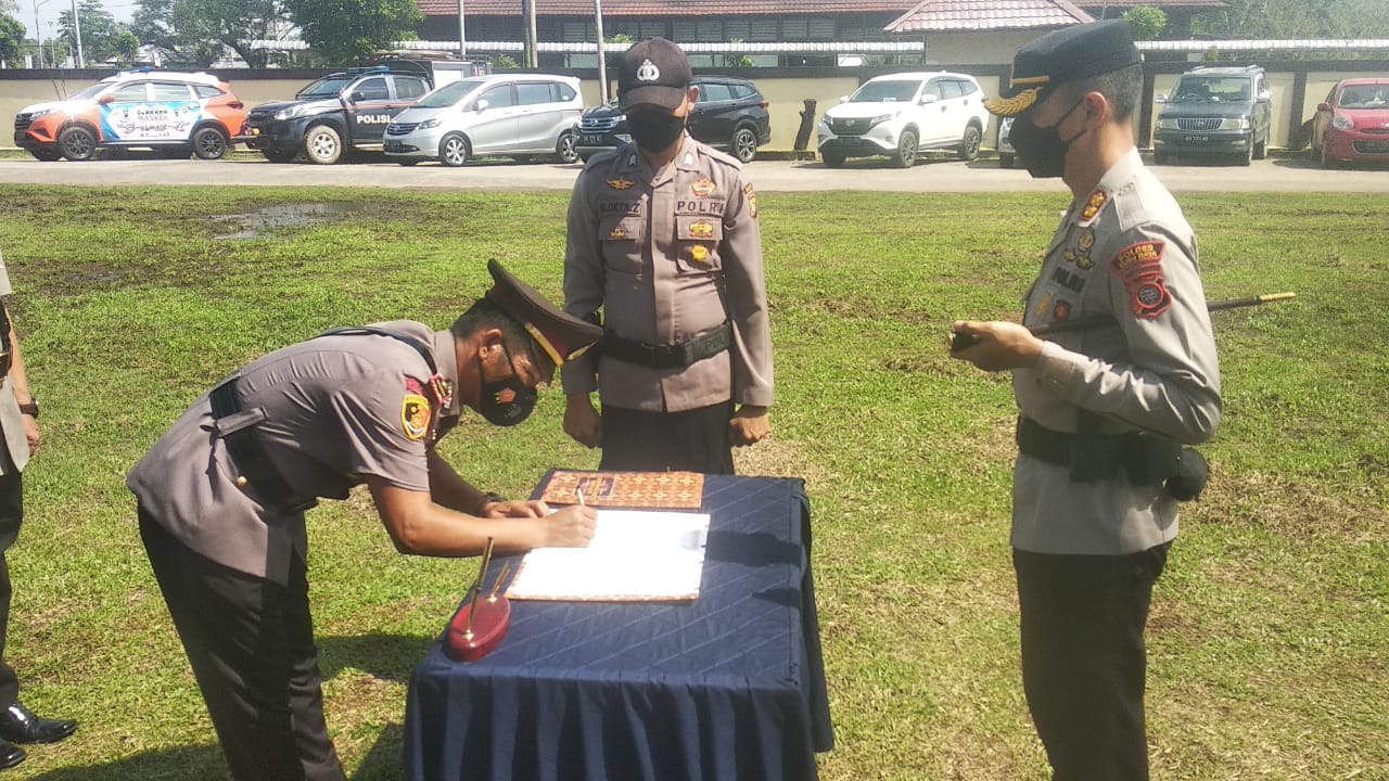 Kapolres Kubu Raya AKBP Jerrold H.Y Kumontoy, S.I.K Pimpin Sertijab Kasat Narkoba dan Kapolsek Kawasan Bandara Supadio